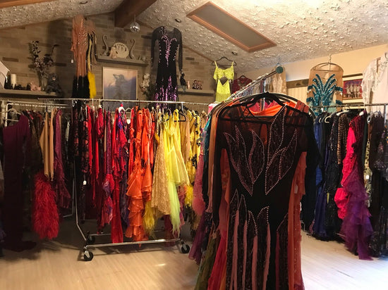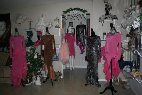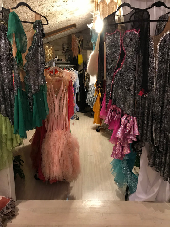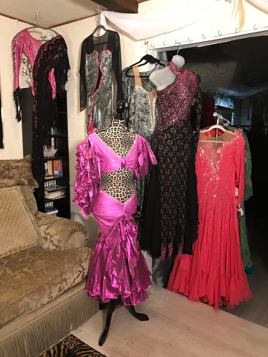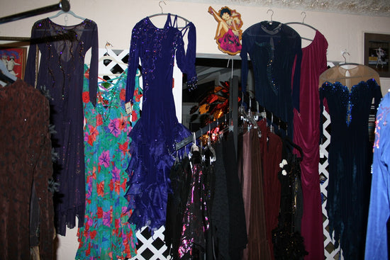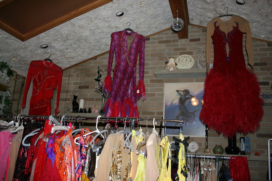 Take a sneak peek into the middle room before immersing yourself in a captivating collection of ballroom, Latin-rhythm, tango dresses, social dance dresses, and even a few men's Latin-rhythm shirts!