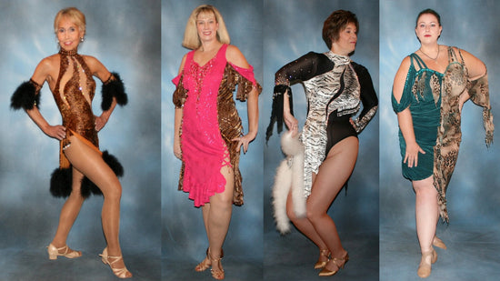 Explore our range of animal prints for your Latin-rhythm, ballroom or tango dance dresses if you like to stand out. From understated touches to bold styles, we offer a variety of options to suit your preference. Visit our popular Serengeti Collection, for the golden touch, our Golden Tigress Collection plus our eye catching Tigress Collection!
