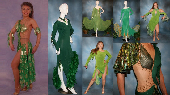 Indulge in the beauty of ballroom, Latin-rhythm, and social dresses designed in captivating green shades. Browse through dance skirts and discounted offerings! Unleash your inner dancer! Glorious & Gorgeous Greens!
