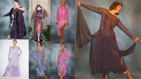 Ballroom dresses, Latin-rhythm dresses, pant sets, social dresses & tango dresses... so many options... made with passion in gorgeous lavender, orchid, & purple colors!