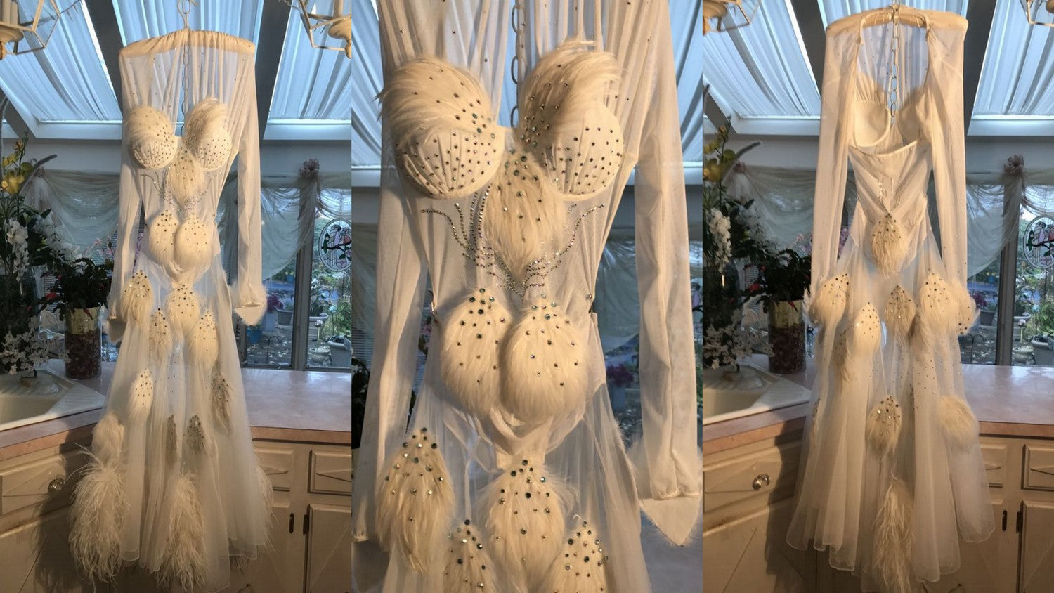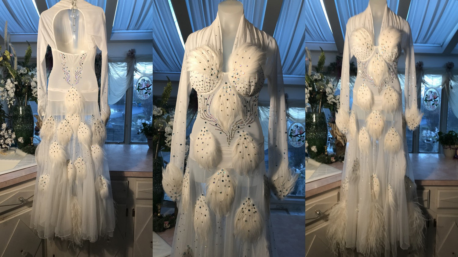 Be an enchanting vision on the ballroom dance floor as you step out wearing our White Swan Ballroom Dress! It is close to completion! I still have more Swarovski rhinestone work to do! If it piques your interest before it is complete, call Linda Crystal at 440-327-7121.